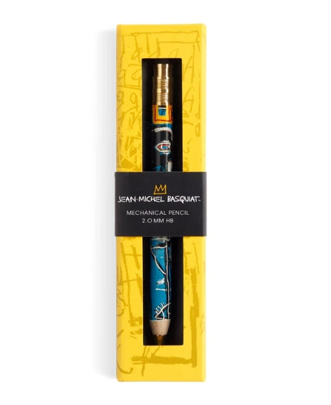 The Basquiat Bird on Money Mechanical Pencil features Basquiat’s iconic Bird on Money artwork and is packaged in a sturdy, giftable, windowed reusable box. It uses a 2mm pencil lead which is standard for mechanical pencils. The pencil lead and erasers are both refillable (not included with the pencil).