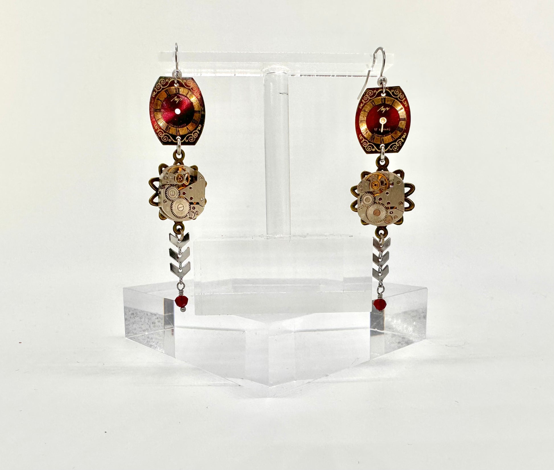 Based out of the San Francisco Bay Area; ReFunct jewelry offers these stunning chandelier earrings with brass accents and vintage time pieces.