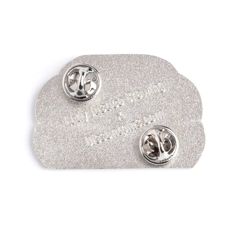 This pin has two clasps to keep it in place. This pin has small parts and is not made for children!