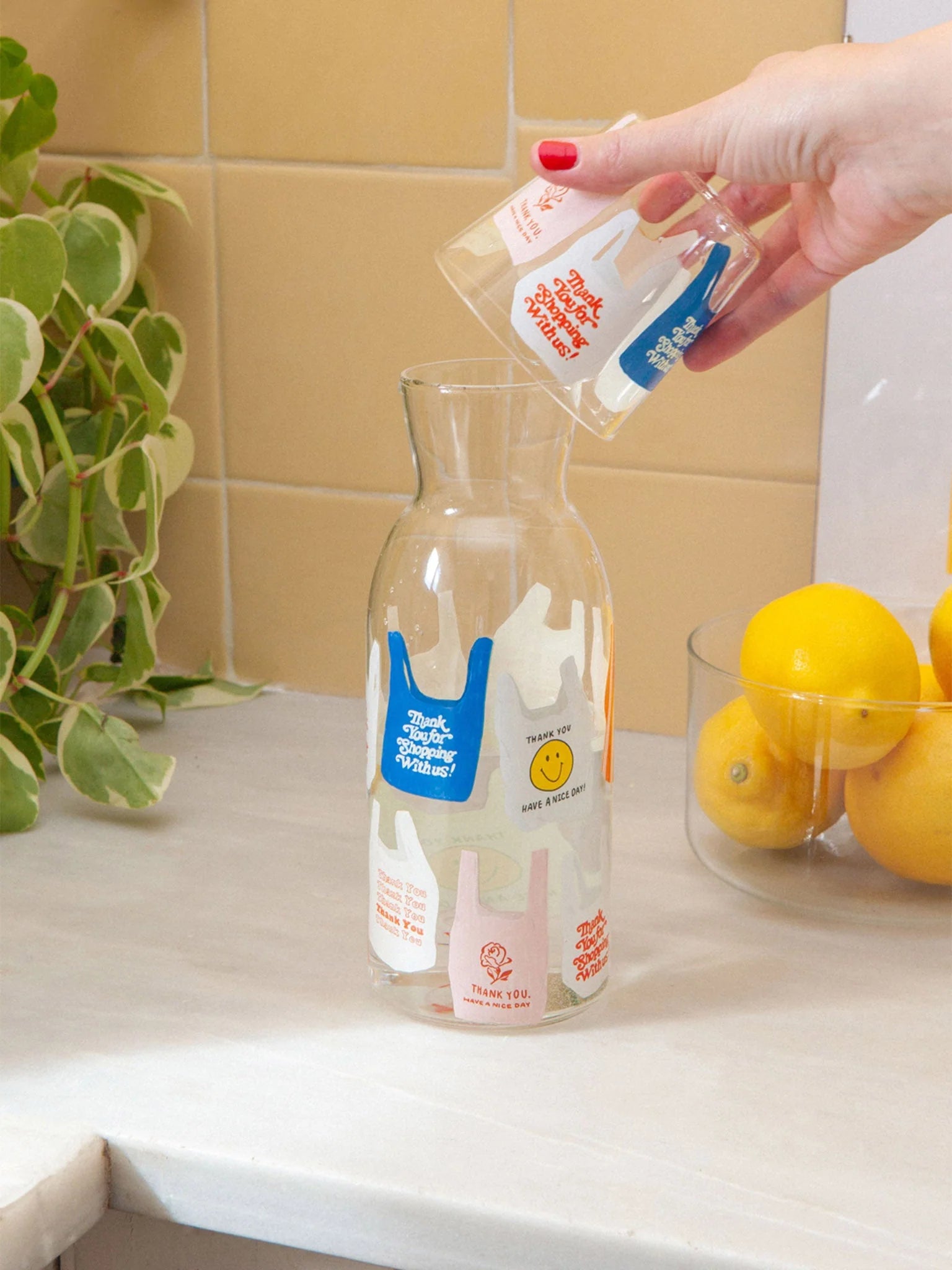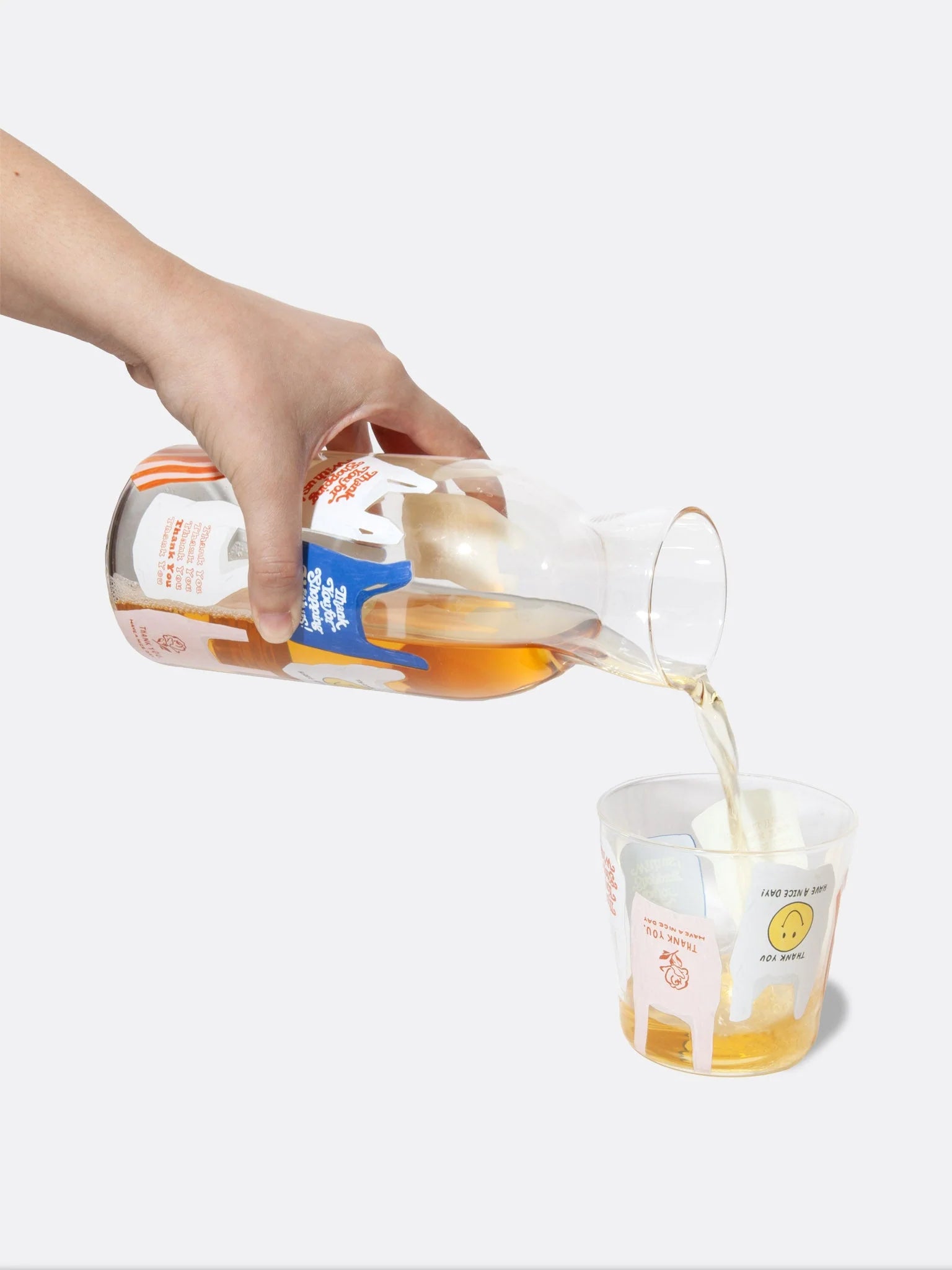 Jar and glass set with shopping bag illustrations, transporting you to the cherished memories of neighborhood corner shops and beloved treats from yesteryears.