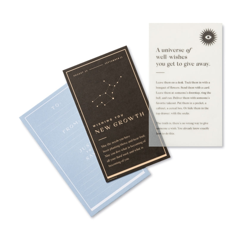Send a wish upon a star with every one of these zodiac-themed cards. Add a card to a birthday gift. Tuck one into a bouquet of flowers. Or leave one at someone’s doorstep. Each card features art worth keeping and an inspiring fortune to last the whole year through. There’s a universe of well-wishes inside this box, and you get to give them away!