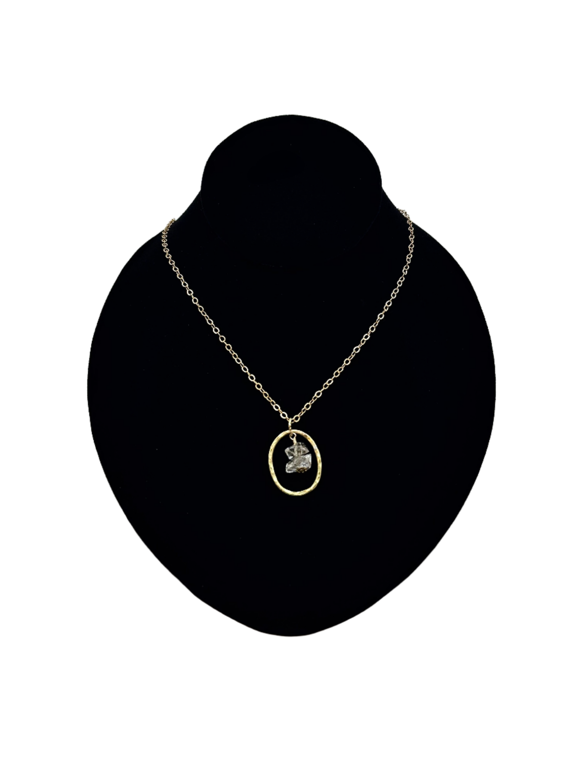 Based out of the San Francisco Bay Area, Yoko's Jewelry offers this dazzling herkimer diamond necklace, haloed by a hammered gold brass hoop.