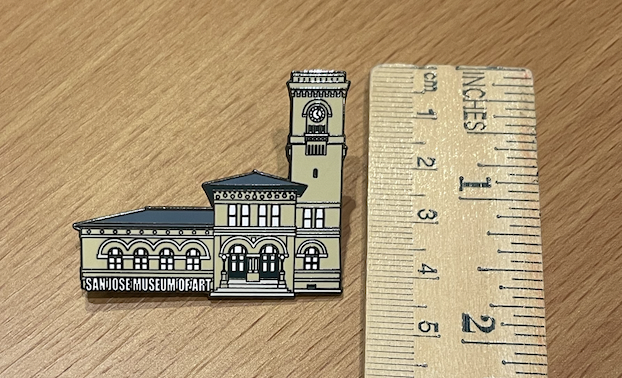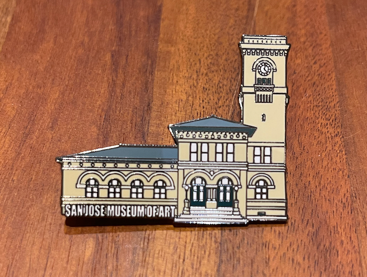 San José Museum of Art's historic 1982 sandstone building is beautifully captured in an enamel pin.