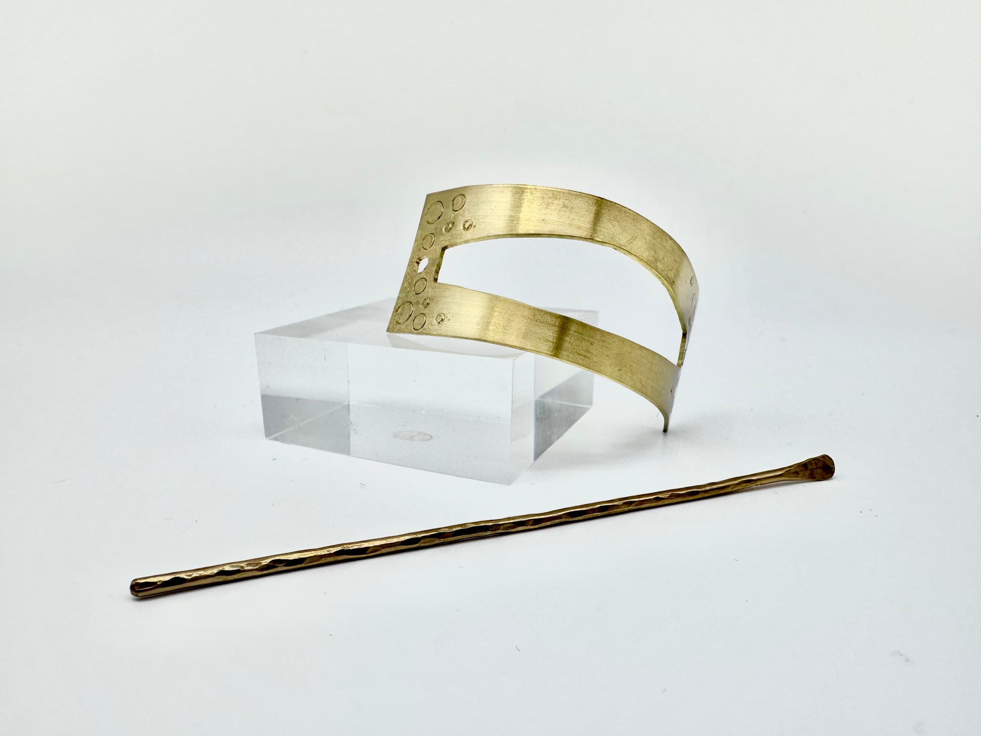 Based out of the San Francisco Bay Area, Yoko's Jewelry offers this unique hand forged brass hair cuff featuring straight linear cutouts and circle stamped design.