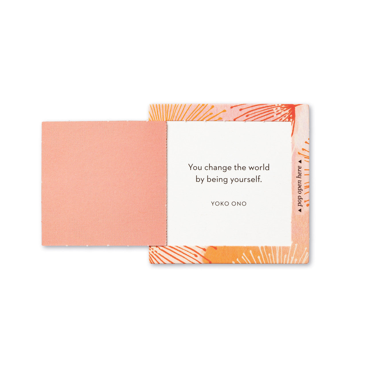 Little pop-open cards with surprise messages inside were the first product we ever made. And they’ve been one of our most popular products ever since. Outside, you’ll find elegant designs to brighten your spirit and catch your attention. Inside, you’ll find timeless messages of inspiration to capture your heart.