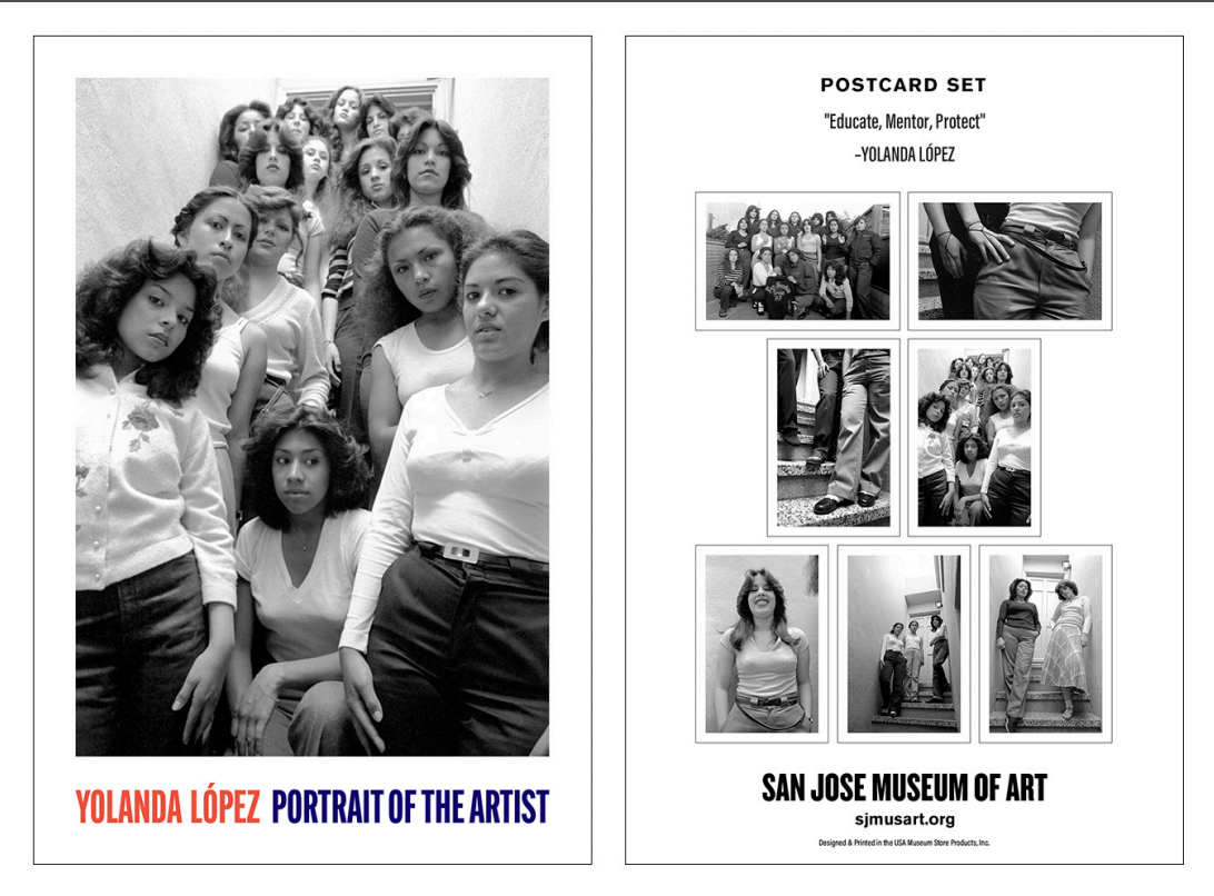 Las Santas Locas Postcard Set features 7 artwork images of the digital print of the black-and-white photographs of the Las Santas Locas, from the series Life in the Mission, 1979, printed 2021 on view at San José Museum of Art's 'Yolanda López Portrait of the Artist Exhibition'.
